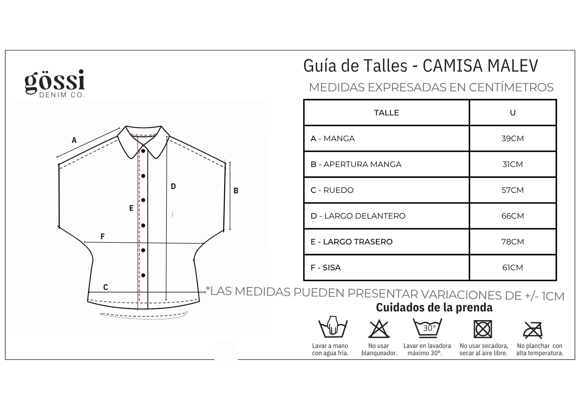 GUÍA DE TALLES - CAMISA MALEV