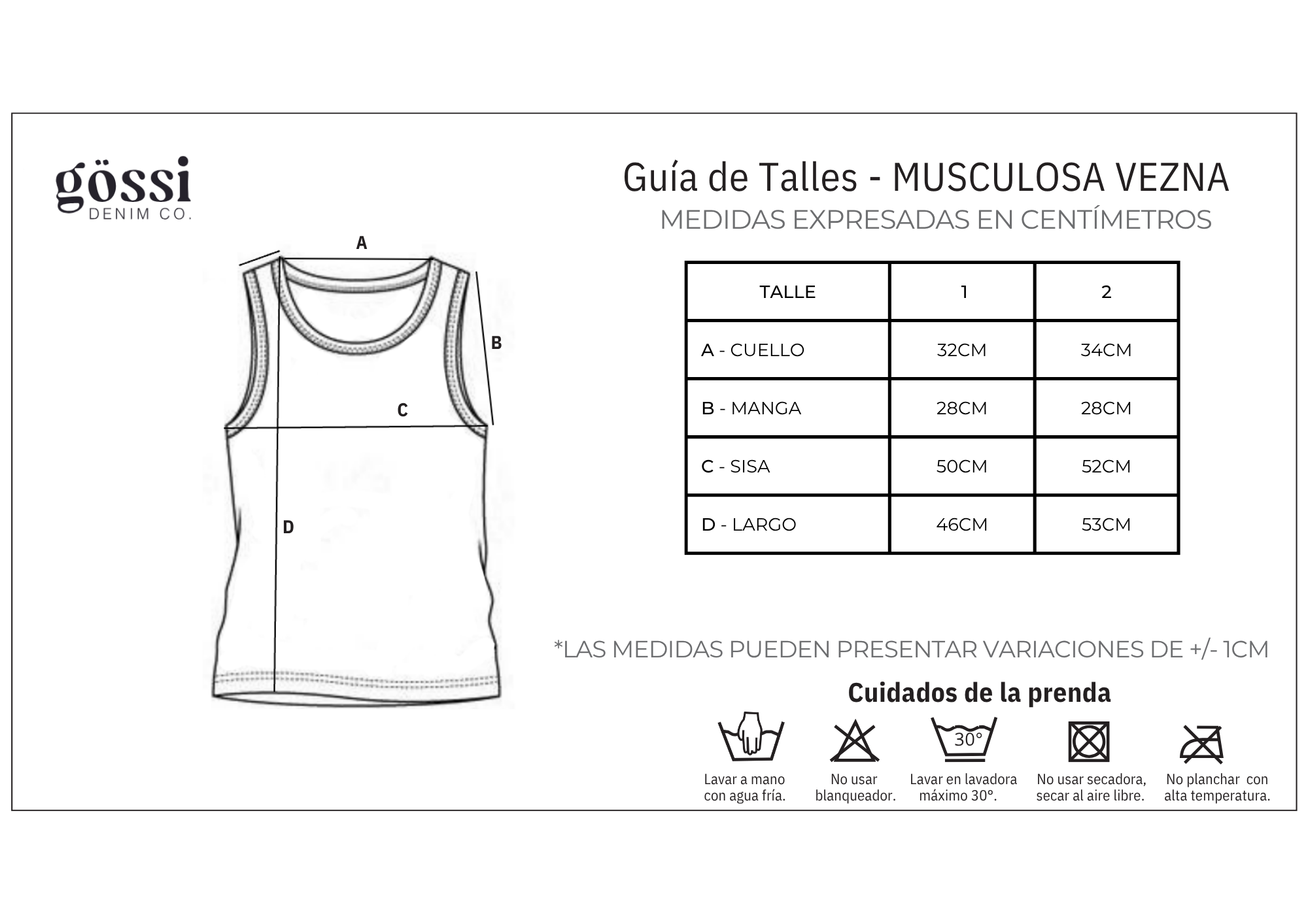 GUÍA DE TALLES - MUSCULOSA VEZNA