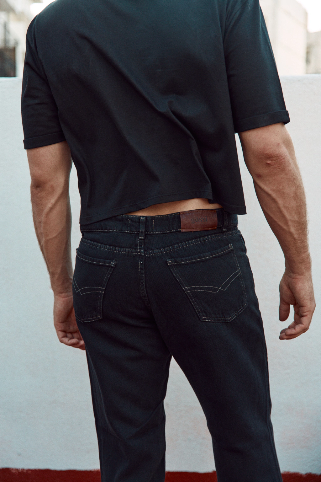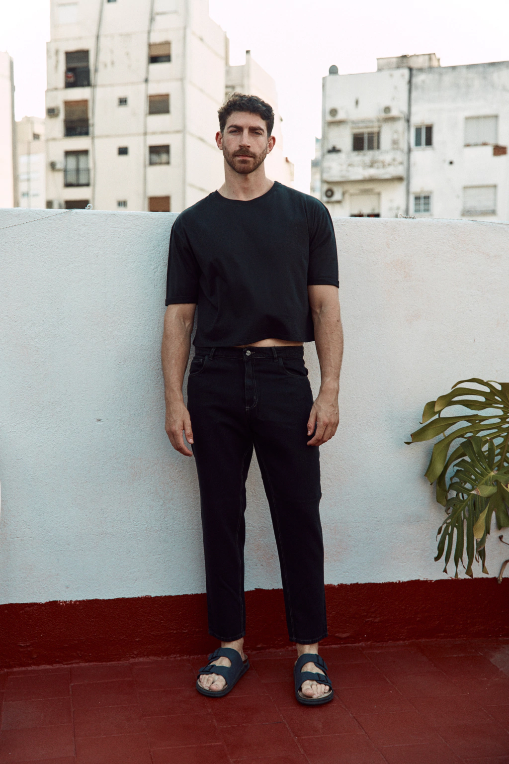 Adriel, mide 1.83 mt y está usando el talle 30. Vito mide 1.93 mt y está usando talle 38.