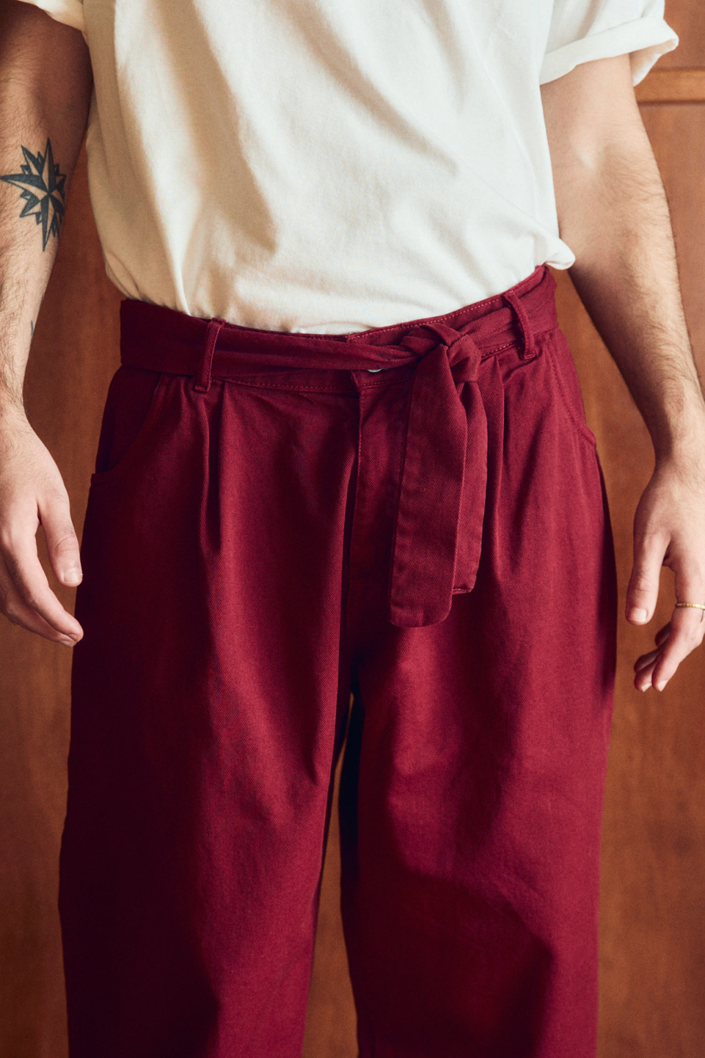 Pantalón confeccionado en . Su diseño incluye pinzas tanto en el delantero como en el trasero, logrando un calce súper cómodo y relajado. Posee piernas amplias y cintura ajustada, que se complementa con un lazo de la misma tela, que permite personalizar el ajuste según sea necesario o se lo puede sacar ya que es desmontable. Es un diseño versátil que fusiona comodidad con tendencia en una prenda atemporal.